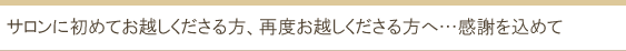 当サロンではそんな不安を少しでも軽くしたい、初めてお越しくださるお客様に感謝のメッセージを込めて、サロンで人気の以下の各コースを、初回1,000円割引き(10,000円以下のコースは500円割引き)にてお受けいただけるようにしました。 |